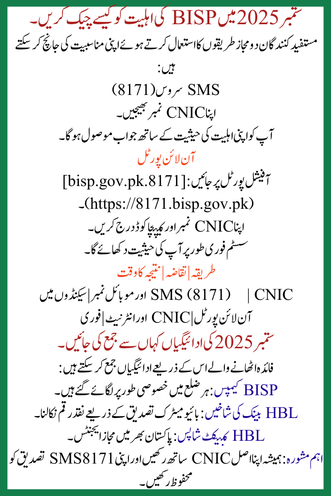 - Visit the official portal: [8171.bisp.gov.pk](https://8171.bisp.gov.pk).