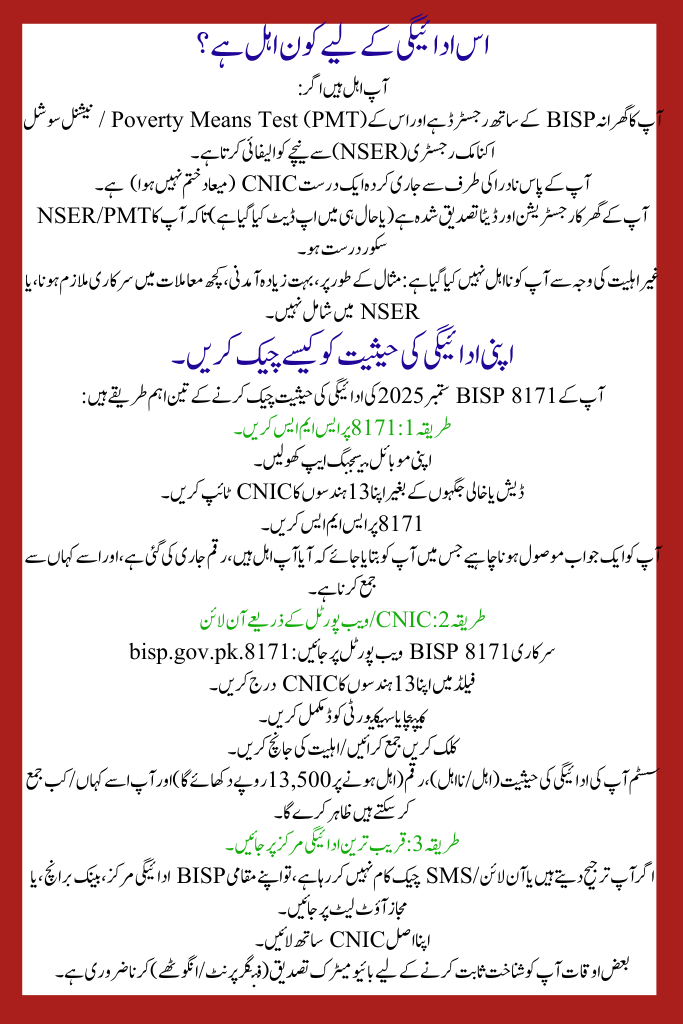 You are eligible if BISP 8171 September 2025 Payment Update: